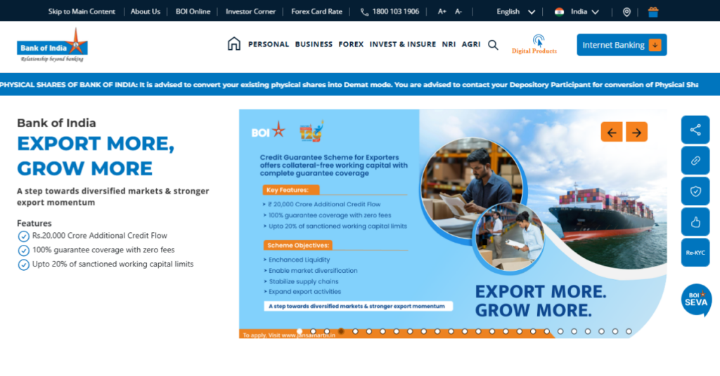 Website: bankofindia.bank.in