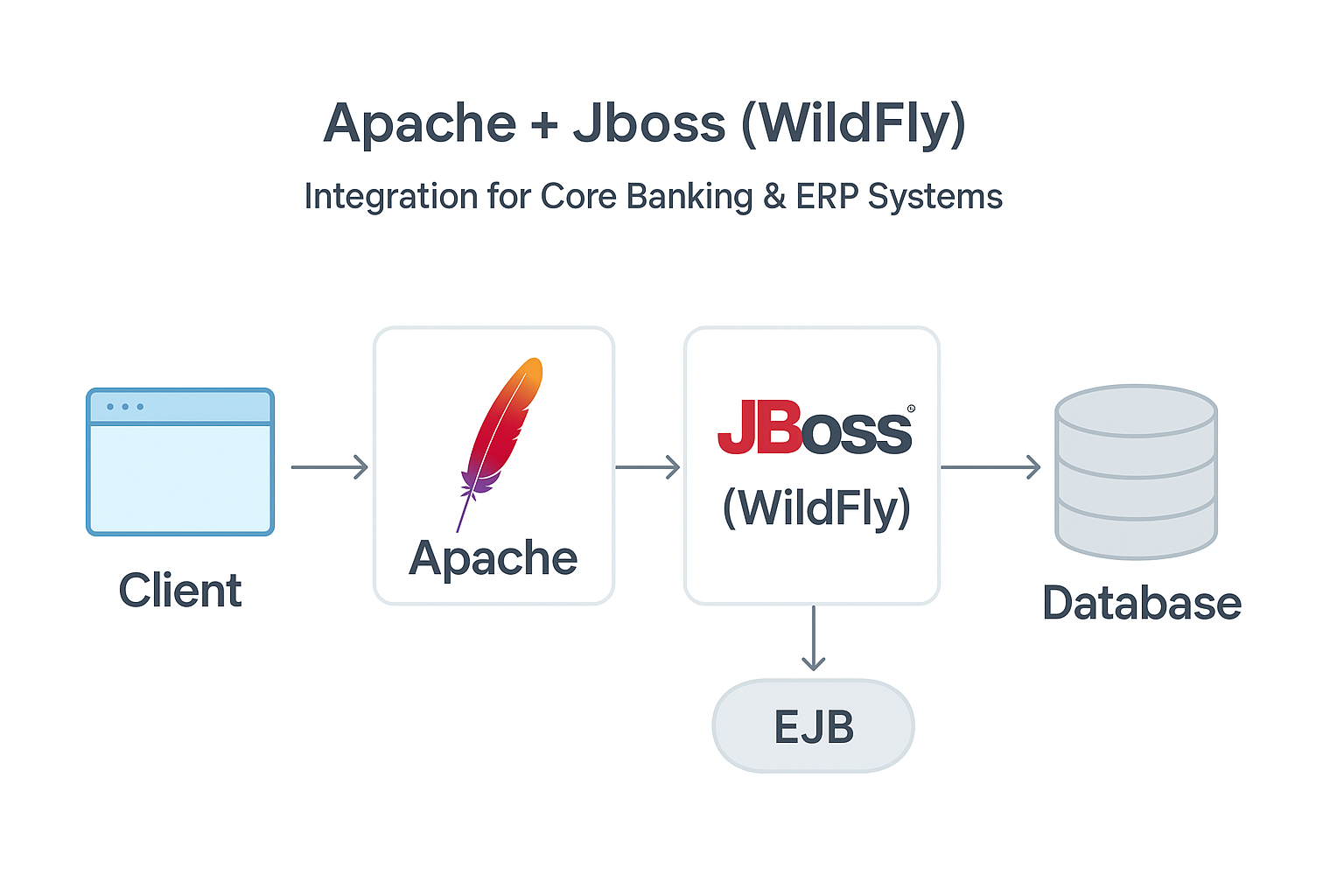 The JBoss WildFly + Apache stack forms the backbone of enterprise applications where performance, security, and scalability are crucial. From Core Banking Systems to Mobile Banking Apps and ERP Platforms, this combination ensures a stable environment capable of handling millions of transactions daily with maximum uptime and security. It’s the trusted choice for enterprises transitioning toward modern Java microservice architectures—without compromising on the robustness of traditional monolithic systems.