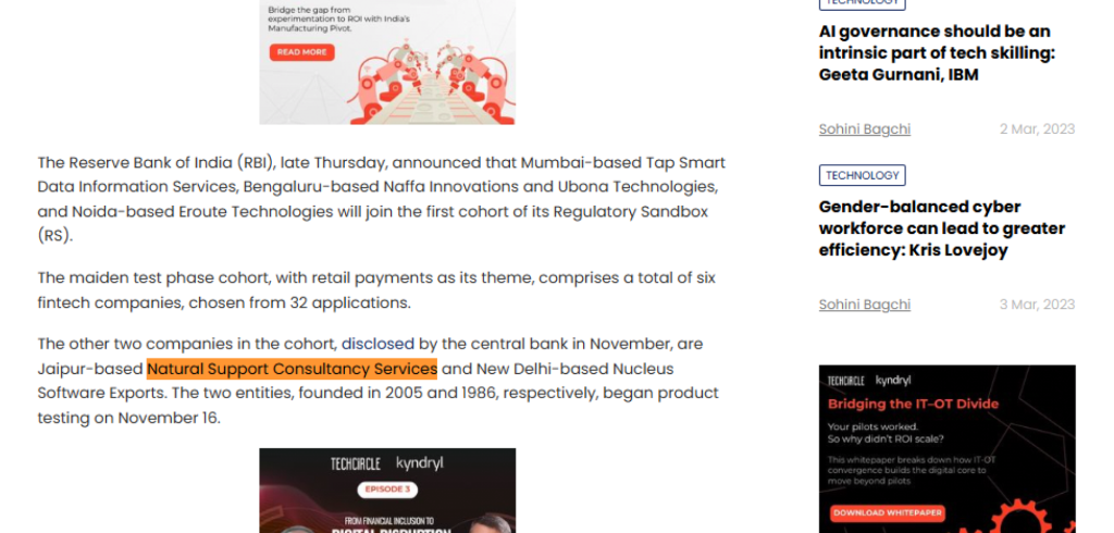 Natural Group (Natural Support Consultancy Services Private Limited) is honored to announce its selection as one of the elite few for the Reserve Bank of India’s (RBI) inaugural Regulatory Sandbox (RS) cohort. This landmark recognition places Natural Group at the forefront of financial innovation in India, tasking us with testing groundbreaking solutions under the theme of Retail Payments.