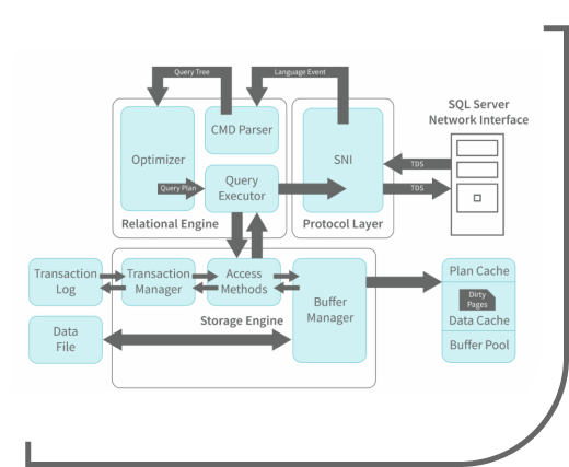 The MS SQL Server services and components include: